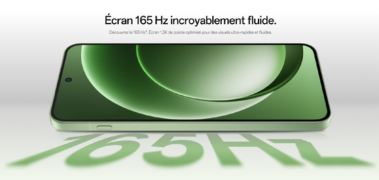 À l’avant, le OnePlus 15R frappe fort avec un écran AMOLED LTPS de 6,83 pouces affichant une définition 1,5K et un taux de rafraîchissement culminant à 165 Hz. Il s’agit tout simplement de la dalle la plus rapide jamais proposée par OnePlus. Si l’absence de technologie LTPO pourra faire tiquer les plus exigeants, la marque compense par une excellente luminosité et une réactivité exemplaire.