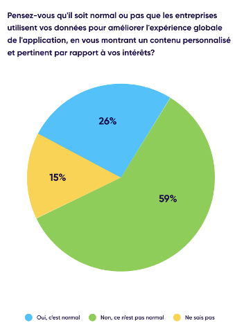 L'une des plus grandes opportunités pour les éditeurs d'applications et les marques est d'améliorer significativement la communication avec les utilisateurs. En effet, près des 3/4 des consommateurs ne sont pas certains de savoir comment leurs données sont utilisées par les entreprises. Par conséquent, 39 % des utilisateurs déclarent ne faire confiance à aucune application concernant leurs données personnelles.