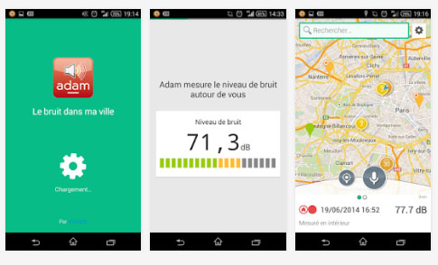 L'application ADAM " le bruit dans ma ville " est disponible gratuitement sur le Google Play Store.