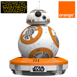 Depuis déjà quelques temps Orange a ouvert son site dédié aux fêtes de Noël, avec des idées cadeaux dans le domaine des mobiles, tablettes et objets connectés. L'opérateur historique Orange n'a pas décidé de passer du côté obscure de la force mais du côté de la "vitrine de Noël en ligne" avec les objets connectés Star Wars. Parmi les jouets et objets "touchés par la Force", en vente à la boutique, se trouve cette petite vedette : le BB-8, un droïde astromech (comme R2-D2) qui a fait son apparition dans l’épisode VII. Ce "jouet" élaboré est disponible en deux versions : mini-drone à piloter avec son smartphone ou télécommandé.