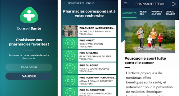 L'application CONSEIL SANTE est un nouveau service qui permet de profiter des conseils de son pharmacien depuis son smartphone. L'application donne la possibilité d'envoyer une ordonnance à son pharmacien après la consultation chez le médecin et de récupérer les médicaments une fois que la commande est prête.