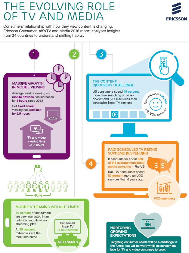 Pour la 7ème année consécutive, l'observatoire ConsumerLab d'Ericsson a dévoilé son rapport annuel concernant la transition vers la mobilité en termes de visionnage TV et vidéo.