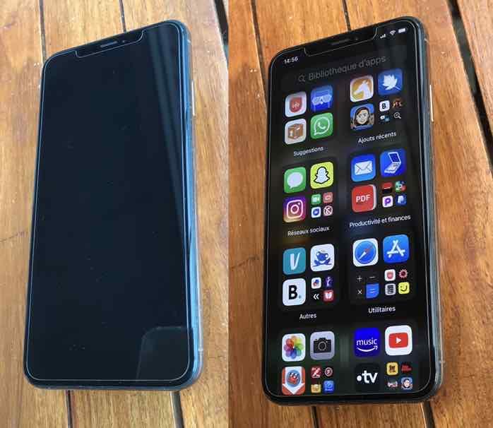 iphone XsMax en PARFAIT ÉTAT aussi bien extérieur que en fonctionnement. dernier ios installé. aucun choc,aucune rayure, toujours protégé par coque arrière et verre sur écran. je peux enlever le sur-écran on dirait qu’il est neuf ! tous les accessoires n’ont JAMAIS servi et sont encore dans la boîte d’origine (voir photos).d’autres photos sur simple demande. vendu 50% de son prix neuf. 820€ . payement cash uniquement
