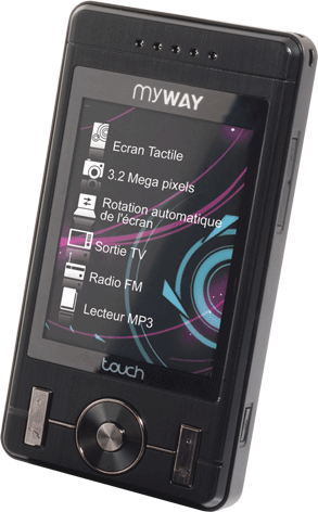 Le My Way Touch s’adresse notamment à ceux qui désirent s’équiper d’un mobile tactile à petit prix. Son écran de 2,4 pouces affiche 262 000 couleurs. Il est doté d’un accéléromètre pour une lecture verticale ou horizontale.